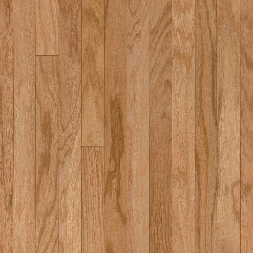 Colony Collection Saddle – a traditional oak hardwood floor in a 3 in. width plank in a warm saddle brown color features a semi-filled face with micro beveled edges and ends. Can be installed in any room of your home on all levels. Easy care provided by the Bruce Dura-Luster plus Finish.