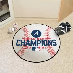 MLB Atlanta Braves 2021 World Series Champions 2.25 ft. Round White Baseball Area Rug by FANMATS