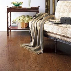 Get the Bruce Town Hall Oak Natural 3/8 in. Thick x 3 in. Wide x Random Length Engineered Hardwood Flooring to add a traditional enhancement to your indoor space. These 5-ply cross grain engineered planks are constructed from domestic oak hardwood, have a Janka rating of 1,290 and offer a stylish combination of a light color and a satiny, glossy finish that coordinates beautifully with a wide variety of design schemes.